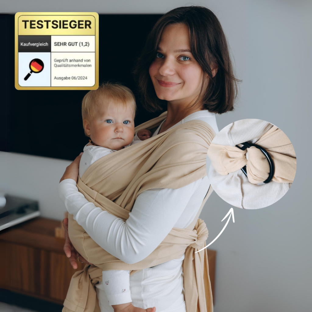 Die Rookie Premium Babytrage bietet eine solide Option für Eltern, die eine einfache Tragelösung wünschen, jedoch mit einigen Einschränkungen. Mit integriertem Neugeborenen-Einsatz und der Möglichkeit, von 3,5 kg bis 15 kg zu verwenden, passt sie sich dem Wachstum deines Kindes an. Die X-förmigen Schultergurte unterstützen eine gewisse Gewichtsverteilung, erfordern jedoch einiges an Einstellungsarbeit zwischen den Trägern. Aus zertifiziertem Baumwoll-Leinen-Mischgewebe gefertigt, bietet sie zwar Belüftung und Stabilität, ist aber mit 500g vergleichsweise schwer. Aufgrund dieser Merkmale ist die Rookie Premium Babytrage für viele Eltern aufgrund ihres hohen Preises und der komplexen Anpassung nicht die ideale Wahl.